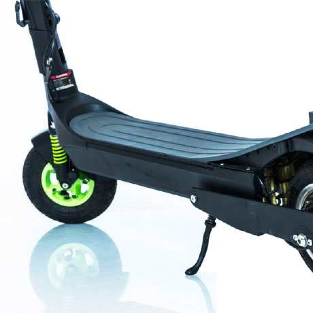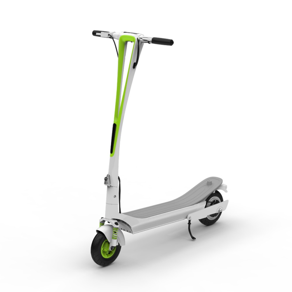 Модель компактная, легкая в управлении, легко складывается для транспортировки в багажнике или транспорте. На раме предусмотрен фиксатор, чтобы самокат случайно не раскрывался и не закрывался.