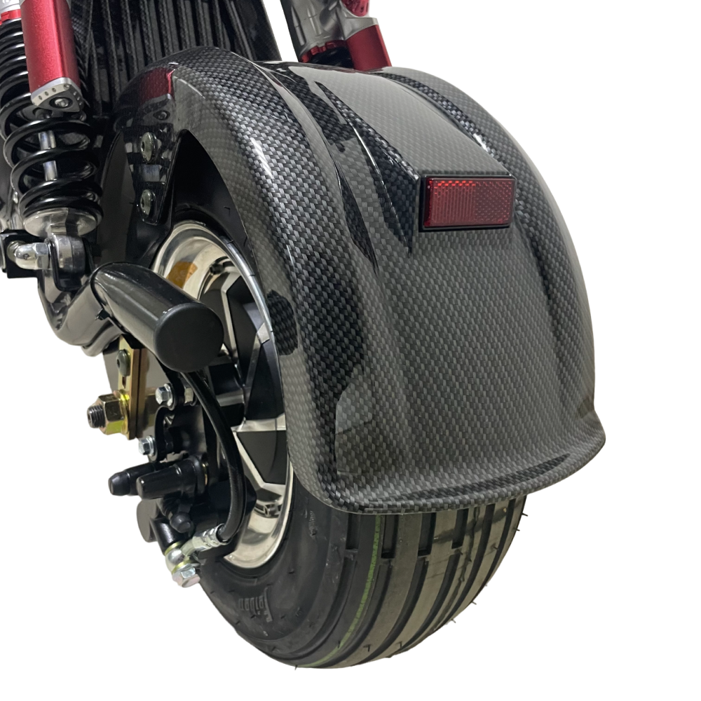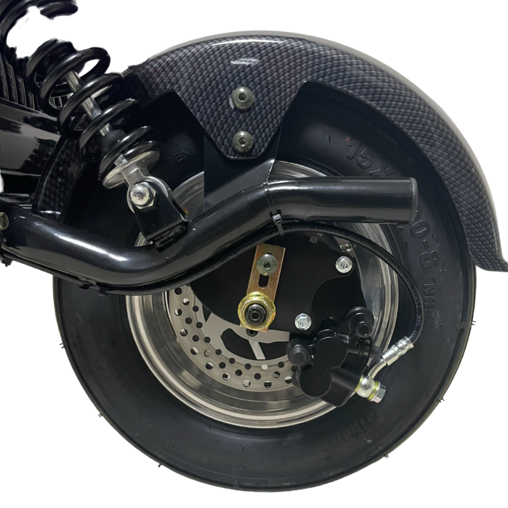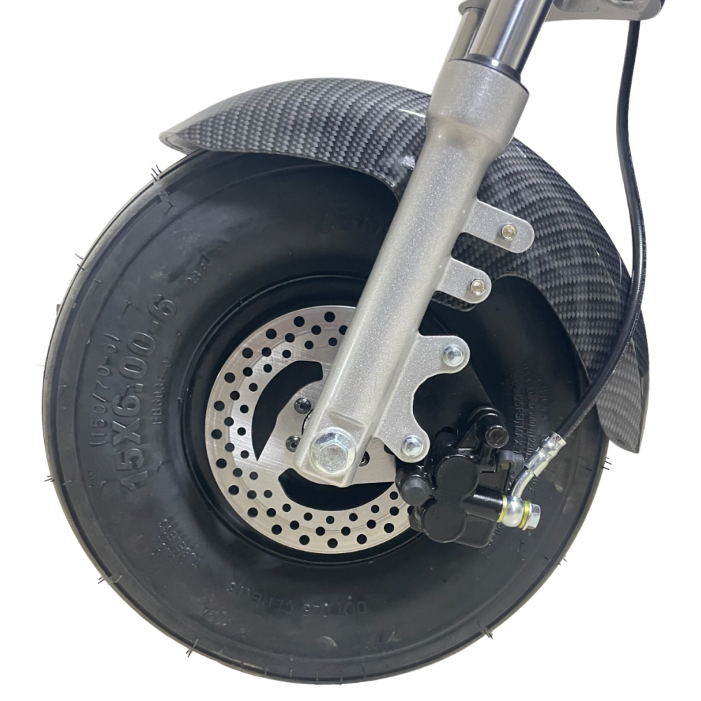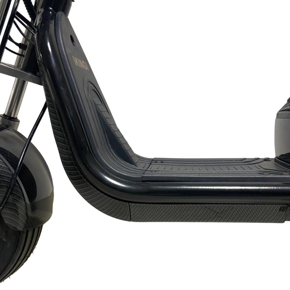 Электроскутер Ikingi X1 PRO (Карбон) оснащен надувными колесами, которые обеспечивают плавную поездку и амортизацию на неровных дорогах.