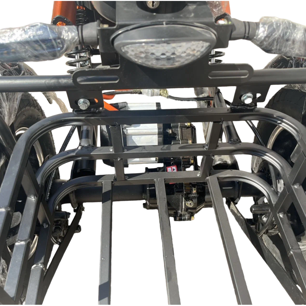 Съёмная литиевая батарея ёмкостью 21 Ah / 60V обеспечивает запас хода до 40–50 км, а полная зарядка занимает около 7 часов. При необходимости аккумулятор можно быстро снять и зарядить отдельно, что особенно удобно для хранения в квартире или офисе.