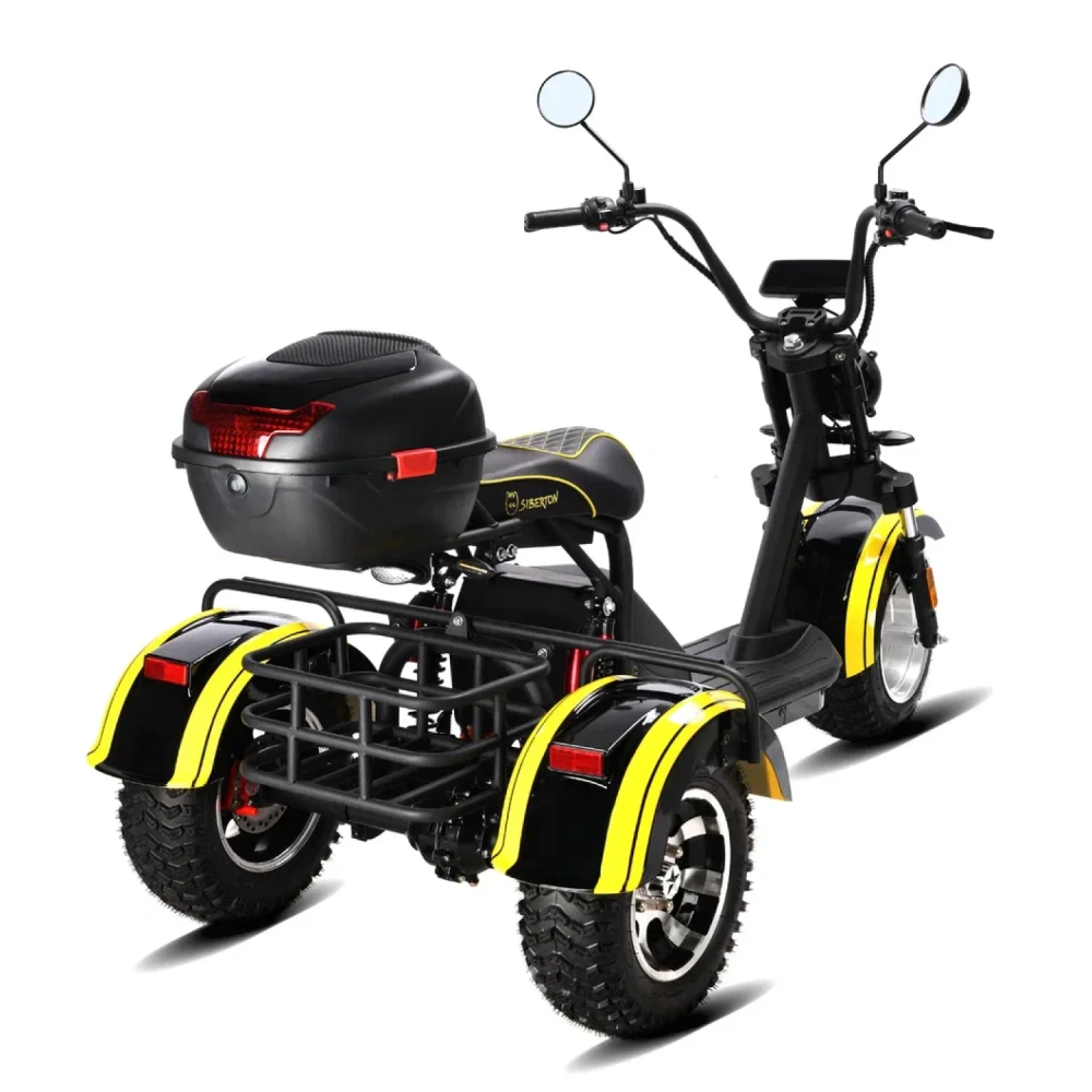 Электроскутер Siberton PRO Trike – это инновационное транспортное средство, сочетающее в себе мощь, практичность и надежную конструкцию, выполненную из высококачественной стали. Благодаря продуманной трехколесной компоновке, данная модель гарантирует стабильность и управляемость даже в условиях городской суеты, а клиренс в 21 см обеспечивает уверенное преодоление неровностей дорожного покрытия.Сердцем устройства является двигатель мощностью 3000 W, который позволяет динамично стартовать и уверенно поддерживать скорость, обеспечивая максимальный пробег до 60 км на одном заряде. Поддерживаемый аккумулятором типа Li-ion с емкостью 21 Ah и рабочим напряжением 60 V, этот скутер быстро восстанавливает заряд за около 7 часов, что делает его идеальным для ежедневного использования.Система безопасности представлена надежными дисковыми гидравлическими тормозами, которые гарантируют своевременное и точное торможение в любых ситуациях. Дополнительное оснащение, включающее поворотники и сигнализацию, повышает видимость на дороге и обеспечивает максимальную защиту водителя.Особое внимание уделено комфорту: спереди используются масляные амортизаторы, а сзади – комбинация масляной системы с пружинной подвеской, что позволяет минимизировать влияние дорожных неровностей на качество поездки. С общей массой 106 кг и компактным размером, электроскутер Siberton PRO Trike удачно сочетает в себе прочность и функциональность, делая его надежным выбором для тех, кто ценит комфорт, мощность и безопасность в одном устройстве.