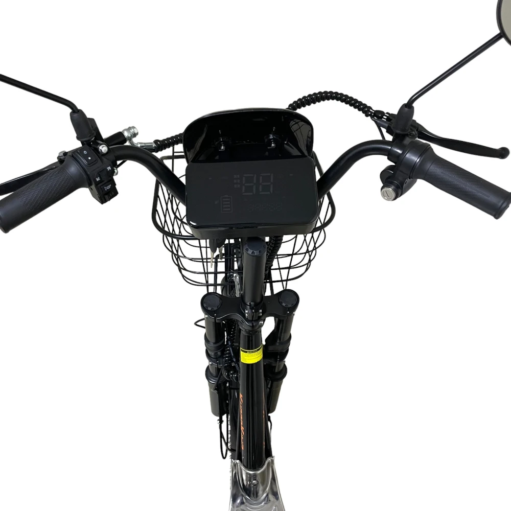 Съёмный аккумулятор 15.6 Ah обеспечивает до 60 км на одном заряде. Передняя амортизационная вилка и задний пружинный амортизатор сглаживают неровности, превращая дорогу в комфорт.