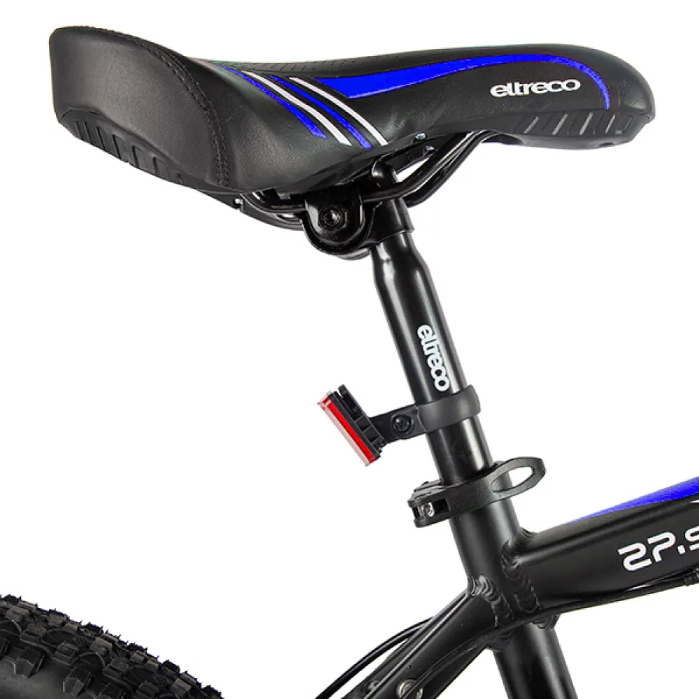 Велогибрид Eltreco XT 600 – доступная и востребованная на рынке электровелосипедов модель. В сравнении с предыдущими вариантами имеет облегченную алюминиевую раму, сглаженную геометрию, в которой нельзя найти острых углов. черно-синяя модель велосипеда сочетает в себе роскошь и многофункционал. Общий вес велика – 20 кг. При разработке модели производитель использовал оригинальные брендовые запчасти, что сделало срок службы техники длительным. Технические особенности электровелосипеда следующие:
