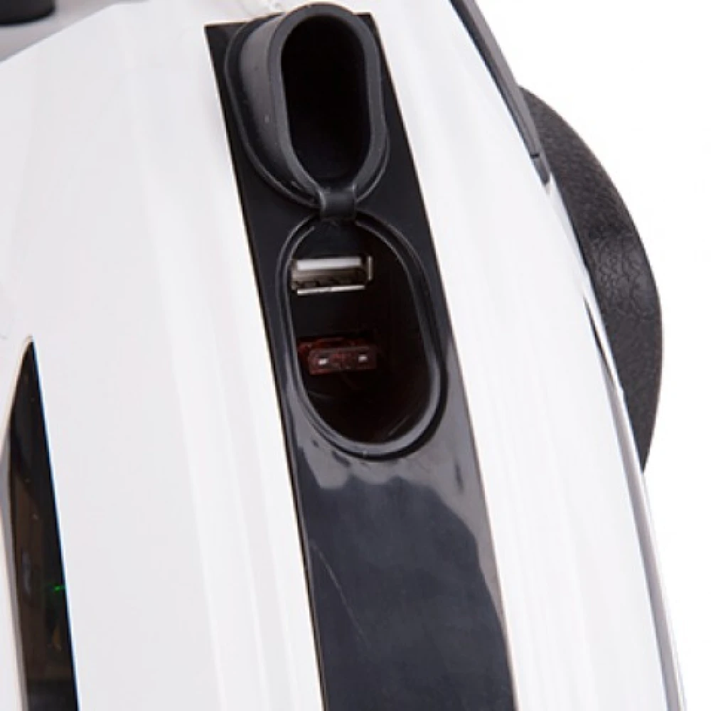 Управлять или настроить наиболее важные показатели можно через приложение, скаченное на Android. Есть USB порт, можно зарядить свой телефон от аккумулятора. LED-подсветка поможет передвигаться в темное время суток.